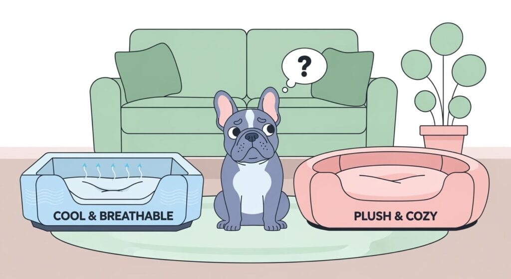 That does not mean every Frenchie needs the same setup. Some sprawl and sleep hot. Others like to lean against a low side. The right choice comes from watching what your dog actually does after a nap: panting, stretching out, climbing off, or staying put.