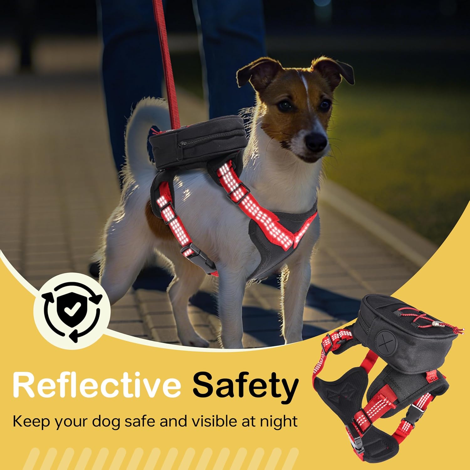 Built-in storage supports daily outings: the backpack includes a poop-bag outlet and can hold waste bags, treats, and small toys, helping owners stay hands-free and reward good behavior on the go.