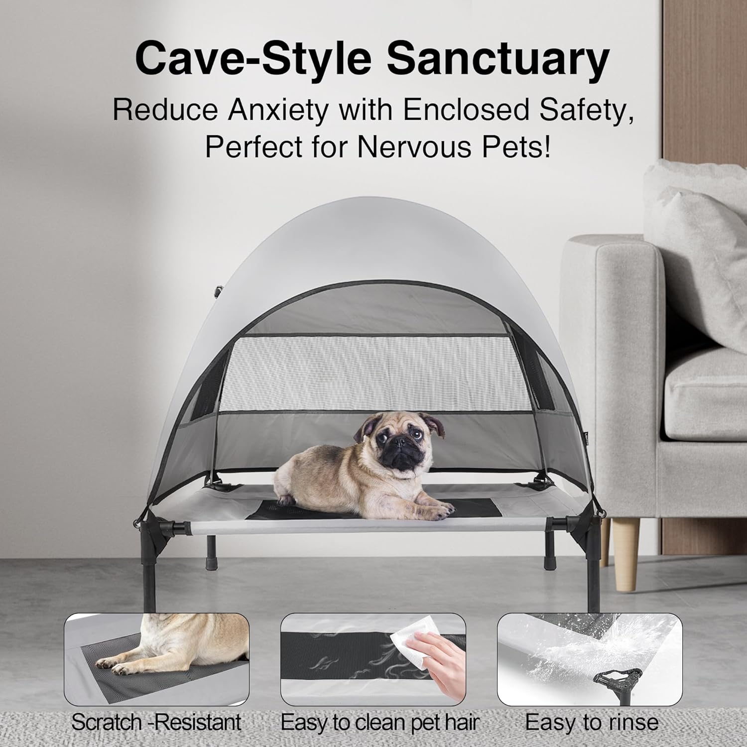 Elevated Comfort: Raised base with breathable materials promotes air circulation underneath and around your pet, keeping the resting area cooler in warm weather. Suitable for all-season use indoors and outdoors
