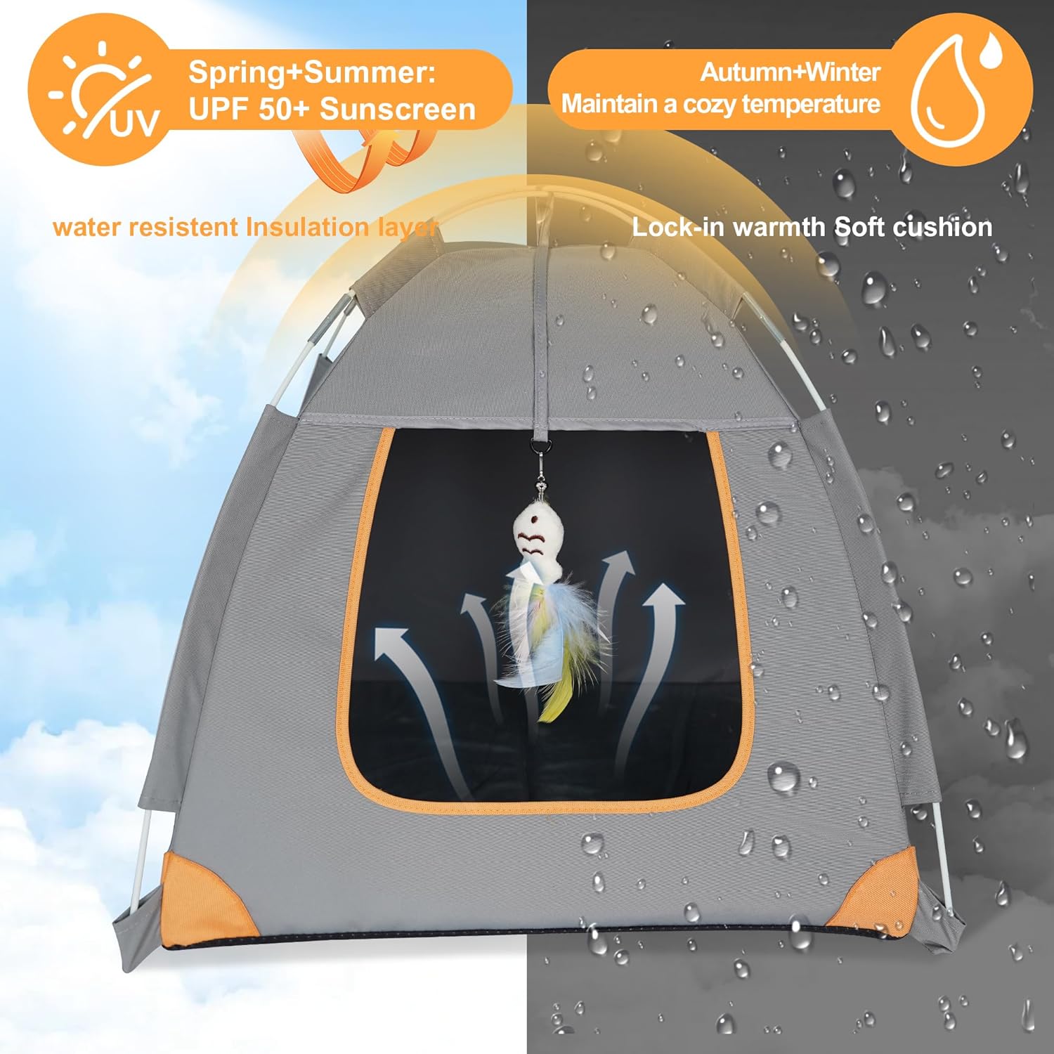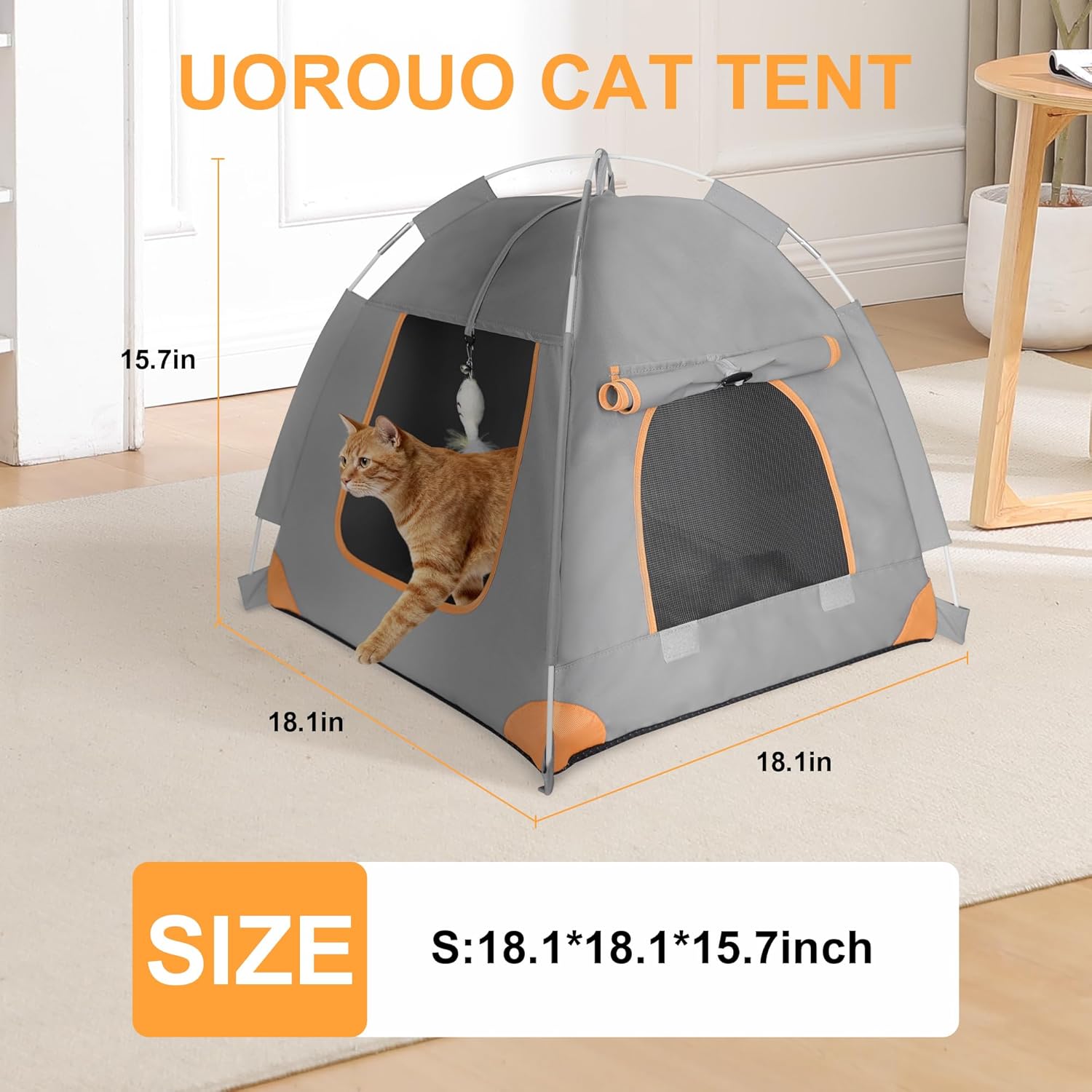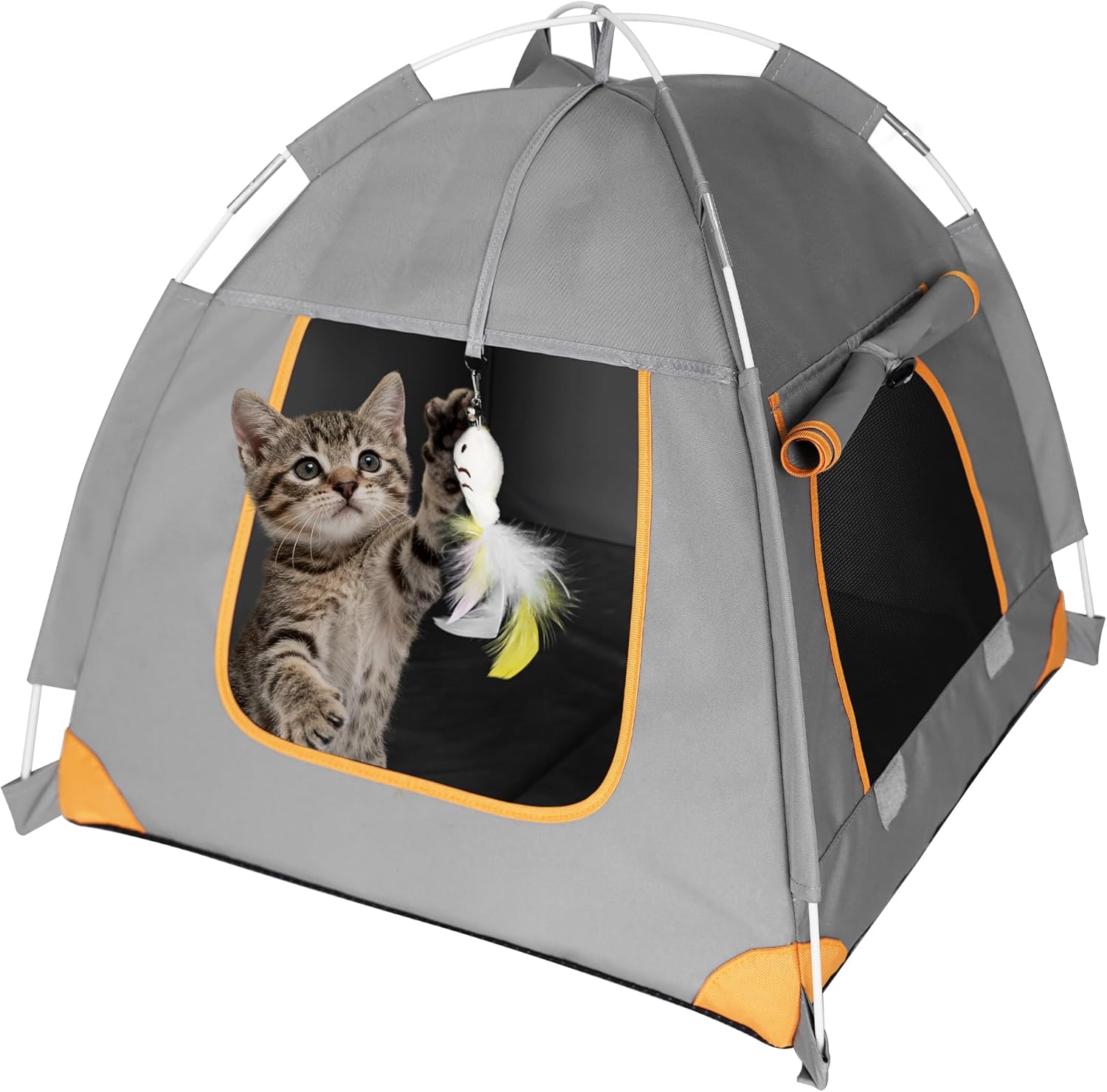 A portable cat tent designed for indoor and outdoor use. It provides a tent-style shelter space that can be used as a resting area at home or as a temporary outdoor setup.